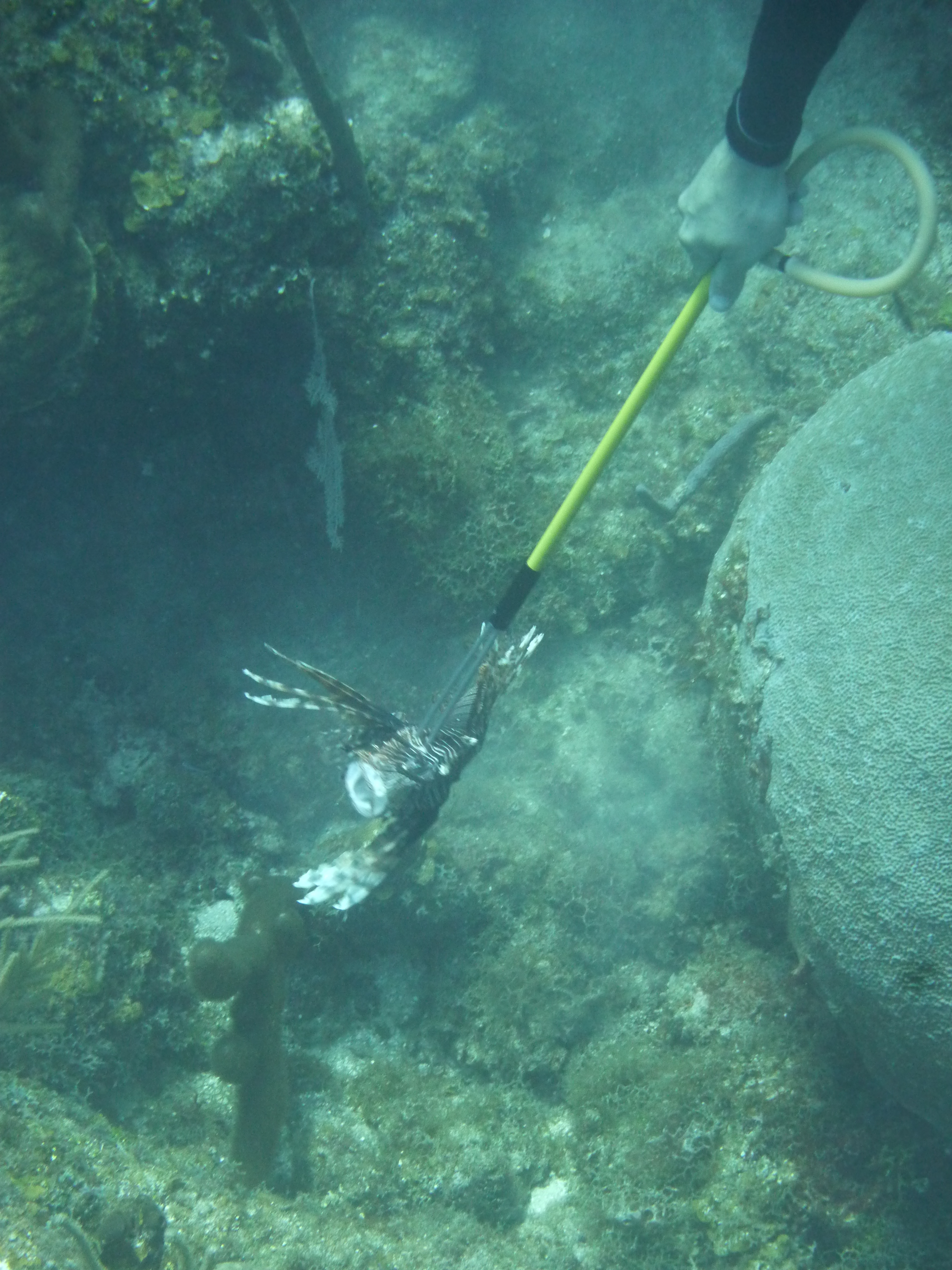 Having first been recorded on the reefs around the island of Utila (Bay Islands, Honduras) in May 2009, this species of fish multiplied, divided, and almost conquered. For those of you who are not aware of this particular fish…..they are a gorgeous one for sure…….BUT, they are not native to the waters of the Caribbean (but of the pacific, amongst others), and they are tearing apart every fish species they can get their mouths on. Being able to expand their stomach thirty times original size, to be able to go weeks without food, to multiply like rabbits, and their penchant for dancing and mesmerizing the young juveniles into a trans – then to be eaten quickly and feverously . With no natural predators in the Caribbean, the Lion Fish are desecrating many fish species from Florida and Mexico – in the north – all the way Panama in the south. Simply put, the fish has no natural predators in these waters AND no external method of population control – as such, you will soon have a reef population consisting solely of Lion Fish, at the top of the food chain……and then you will start loosing the actual reef as well.