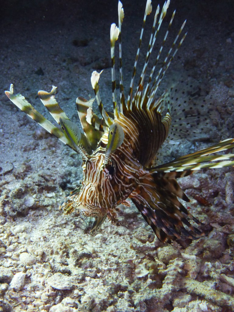 And I almost forgot. The Lion Fish are actually venomous. That is, the fins (or more like spikes) can give you one helluva painful situation, if you do get stung by one. Swelling, numbness, and burning, with the outside chance of death thrown in. In only a few people, the reaction to a sting is simple (Burgundy has handled it well from what Ive witnessed). Mostly the reaction, is of the “ That was the worst pain ever” category. Simply put, you don’t want to get stung.