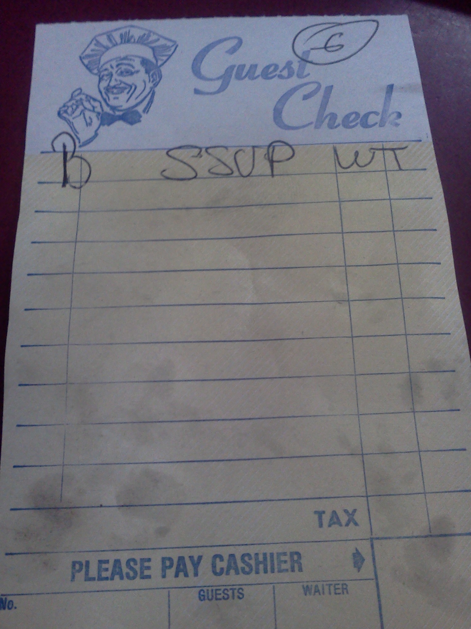 As always, the food was hot, fresh, served quick, and with just enough attitude to make you feel welcome. I had a choice of weekend papers to read and found a quiet table close to the back of the restaurant – me and the Toronto Star. As I have previously written about the “Best Western” they serve here, it was on the tip of my tongue to make that my choice yesterday as well. However I opted for a dish we are all familiar with but one I neglect (do to the grandness of the western) when Im visiting Jims. This particular choice can be found in many restaurants, diners and bars with the prefix “all day”. After eating I got the check and proceed to the cashier. A quick look at the bill to see what I was in fact being charged for, I decided to take a picture of the order as written by the waitress. Based on this, any ideas what I ate? Of note, the total included a drink and came to $5.50 with tax.